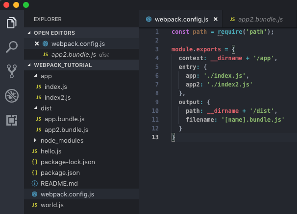 !function(e){var t={};function n(r){if(t[r])return t[r].exports;var o=t[r]={i:r,l:!1,exports:{}};return e[r].call(o.exports,o,o.exports,n),o.l=!0,o.exports}n.m=e,n.c=t,n.d=function(e,t,r){n.o(e,t)||Object.defineProperty(e,t,{enumerable:!0,get:r})},n.r=function(e){"undefined"!=typeof Symbol&&Symbol.toStringTag&&Object.defineProperty(e,Symbol.toStringTag,{value:"Module"}),Object.defineProperty(e,"__esModule",{value:!0})},n.t=function(e,t){if(1&t&&(e=n(e)),8&t)return e;if(4&t&&"object"==typeof e&&e&&e.__esModule)return e;var r=Object.create(null);if(n.r(r),Object.defineProperty(r,"default",{enumerable:!0,value:e}),2&t&&"string"!=typeof e)for(var o in e)n.d(r,o,function(t){return e[t]}.bind(null,o));return r},n.n=function(e){var t=e&&e.__esModule?function(){return e.default}:function(){return e};return n.d(t,"a",t),t},n.o=function(e,t){return Object.prototype.hasOwnProperty.call(e,t)},n.p="",n(n.s=1)}([function(e,t){e.exports=function(e){return e.webpackPolyfill||(e.deprecate=function(){},e.paths=[],e.children||(e.children=[]),Object.defineProperty(e,"loaded",{enumerable:!0,get:function(){return e.l}}),Object.defineProperty(e,"id",{enumerable:!0,get:function(){return e.i}}),e.webpackPolyfill=1),e}},function(e,t,n){var r=n(2)+n(3);e.exports=r},function(e,t,n){(function(e){e.export="Hello"}).call(this,n(0)(e))},function(e,t,n){(function(e){e.export="World"}).call(this,n(0)(e))}]);3.1. webpack.config.js